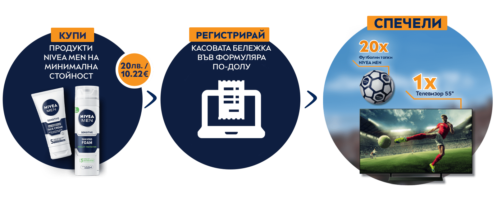 Имаш шанс да спечелиш: 1x телевизор 55" и 1 от 20 броя футболни топки NIVEA MEN!