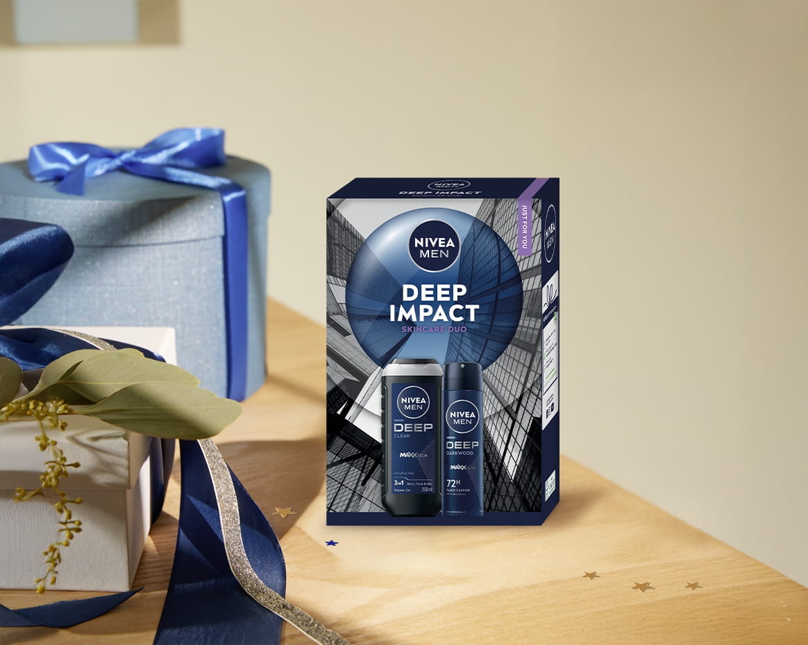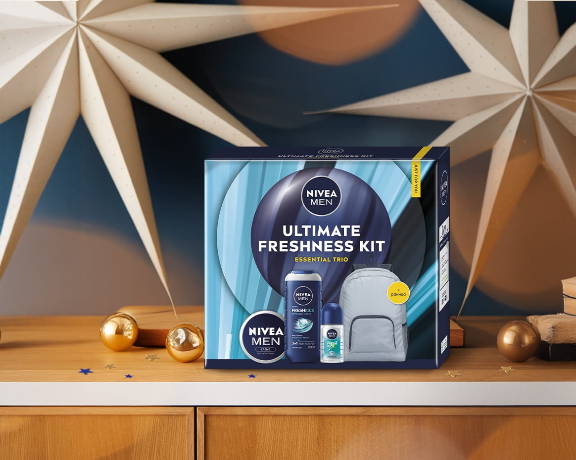 Избери нещо специално за мъжа, който цени стила, свежестта и увереността всеки ден! Нашите премиум комплекти NIVEA MEN са създадени, за да му осигурят изискан комфорт, модерна грижа и дълготрайно усещане за свежест – независимо дали е в офиса, на среща или във фитнеса. Подари му елегантна комбинация от висококачествени продукти, която ще подчертава неговата индивидуалност и превръща грижата за себе си истинско удоволствие.