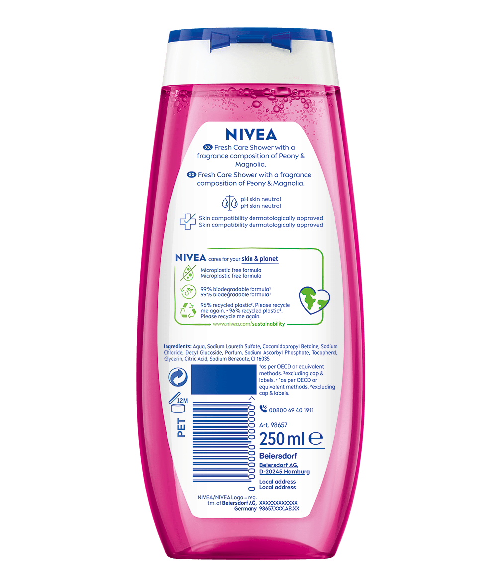 С pH балансирана формула, дерматологично одобрена съвместимост с кожата и 99% биоразградима формула без микропластмаса, NIVEA се грижи както за твоята кожа, така и за планетата.