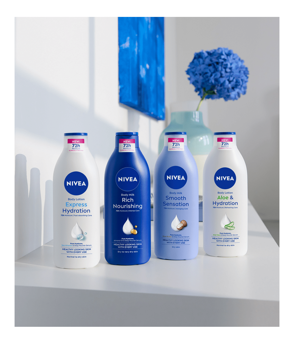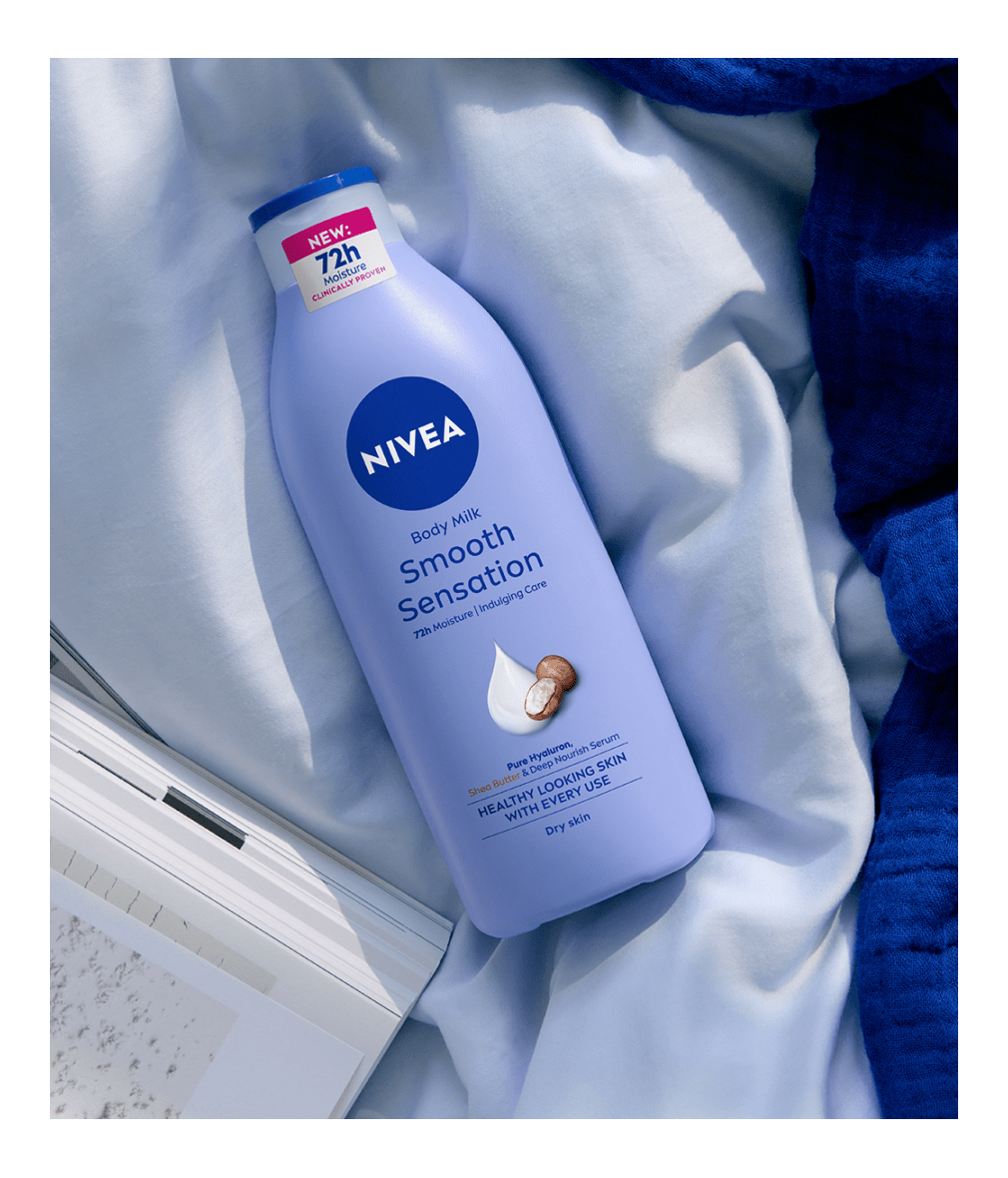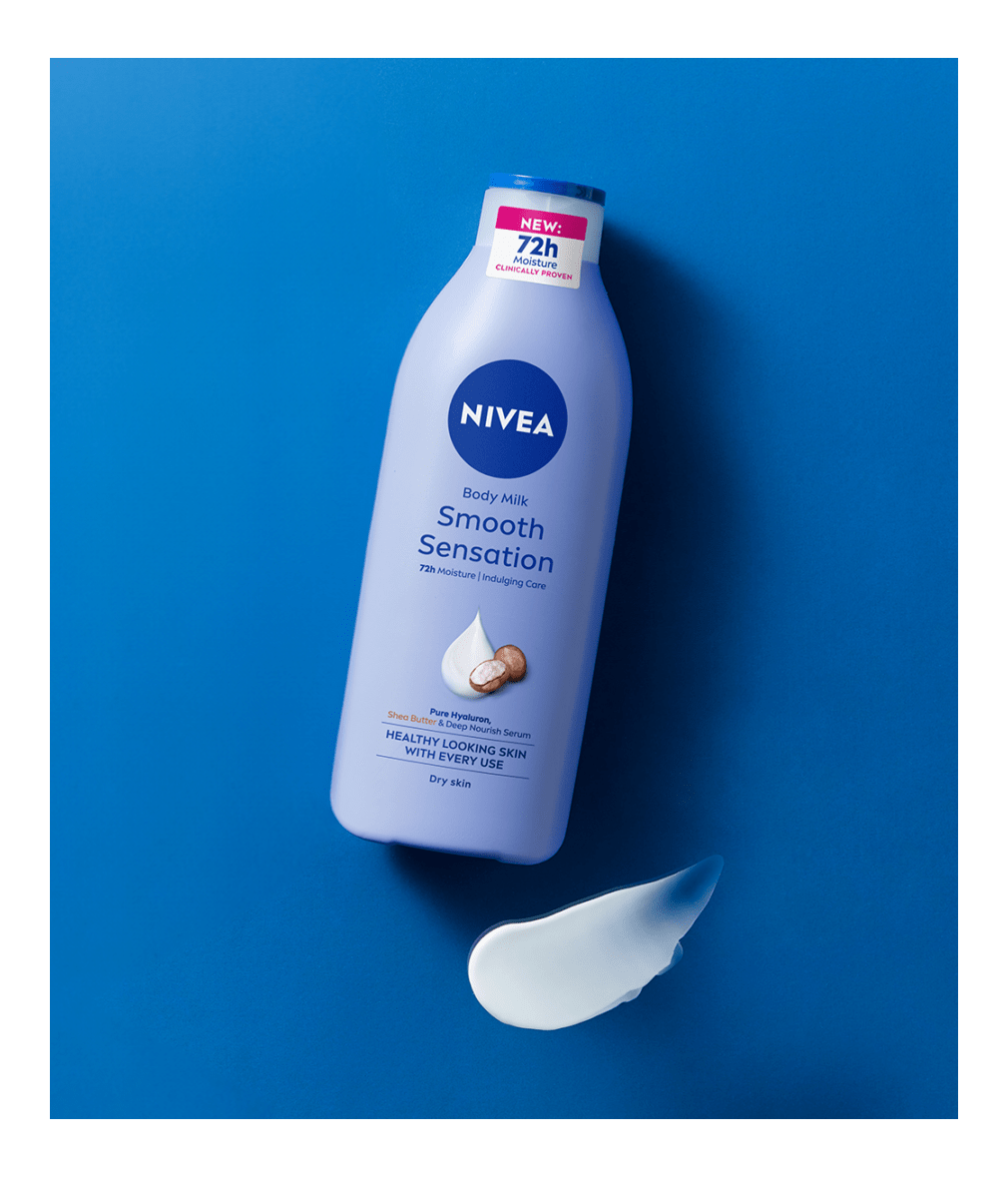 Някои зони на кожата се усещат по-сухи от други, затова е важно да им осигуряваш допълнителна грижа през цялата година. NIVEA се грижи както за кожата ти, така и за планетата. Мляко за тяло NIVEA Smooth Sensation е в нова, подобрена бутилка, с намалено количество пластмаса спрямо предишната версия - 50% рециклирана пластмаса (без капачката).
