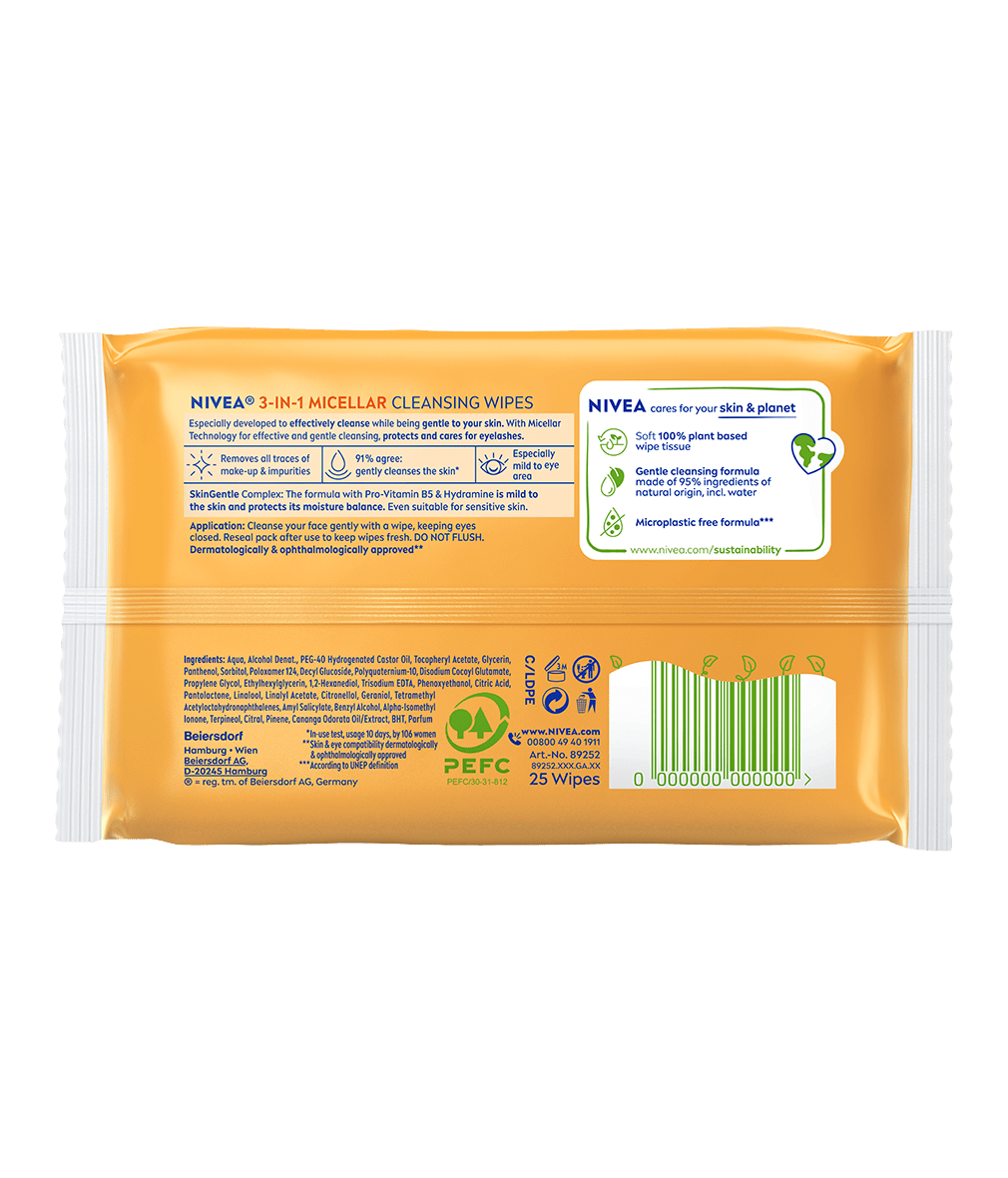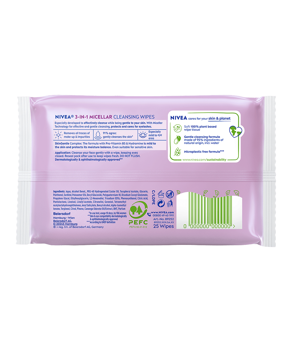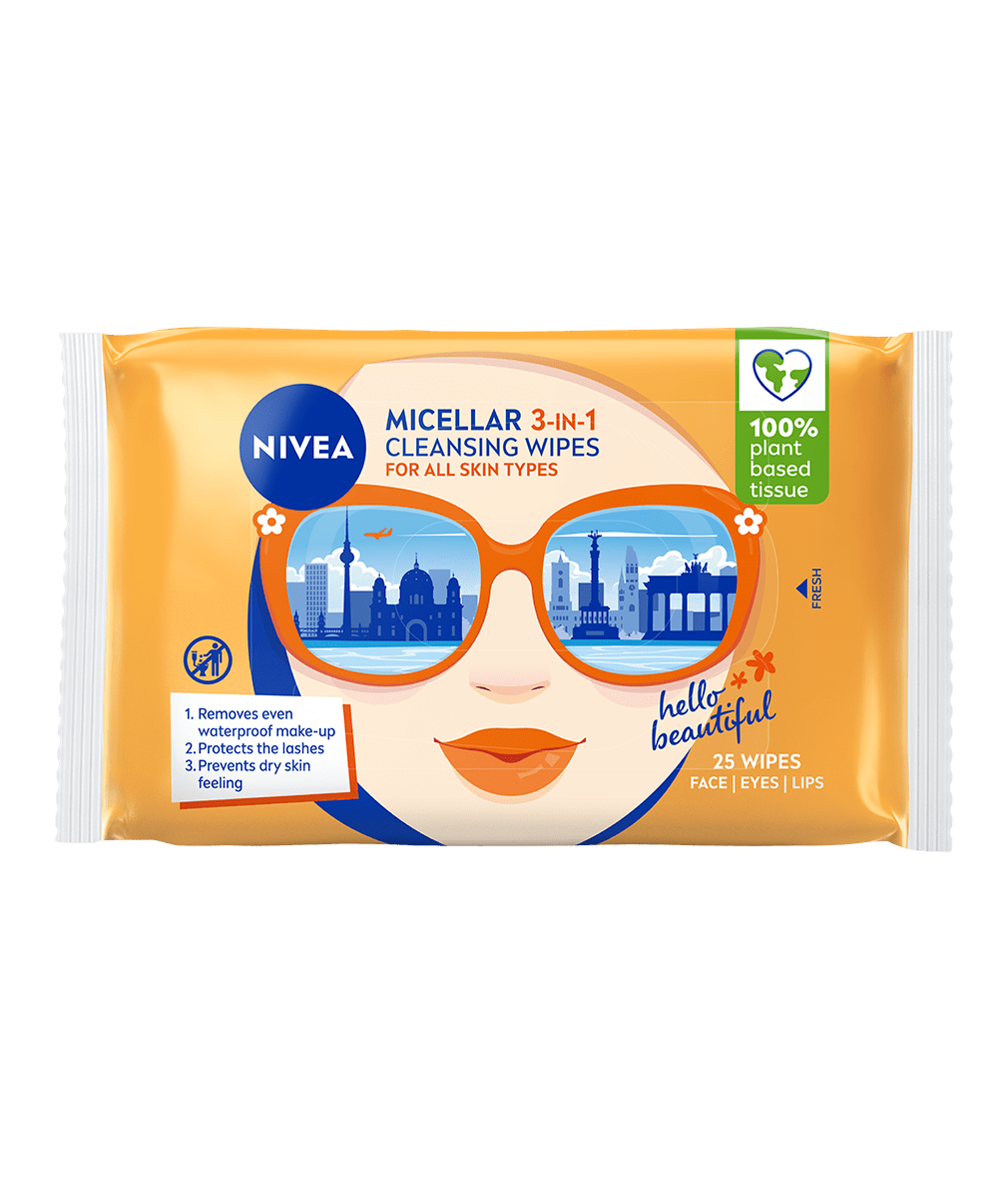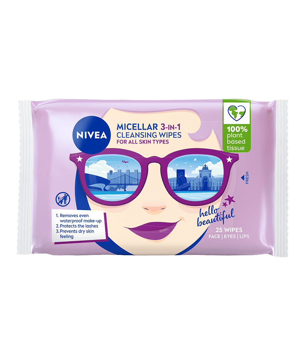 Наслади се на най-доброто почистване с мицеларните почистващи кърпички на NIVEA. Тези кърпички 3-в-1 премахват дори водоустойчивия грим, хидратират и защитават кожата ти, без да оставят остатъци от грим. Идеални за ежедневна употреба и с оптимален размер за пътуване, те поддържат кожата ти чиста в движение - навсякъде и по всяко време! Подходящи за всички типове кожа.