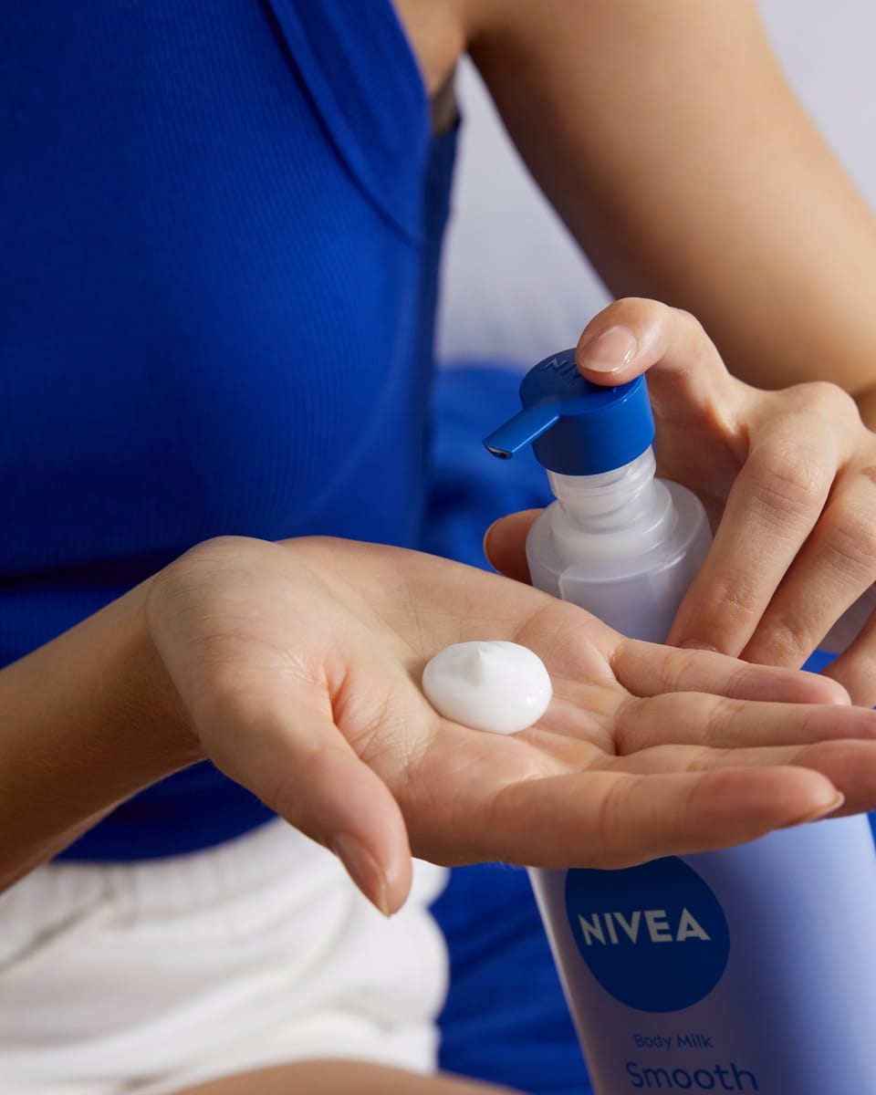 NIVEA се грижи както за кожата ти, така и за планетата. Мляко за тяло NIVEA Smooth Sensation е в нова, подобрена бутилка, с намалено количество пластмаса спрямо предишната версия - 50% рециклирана пластмаса (без помпата).