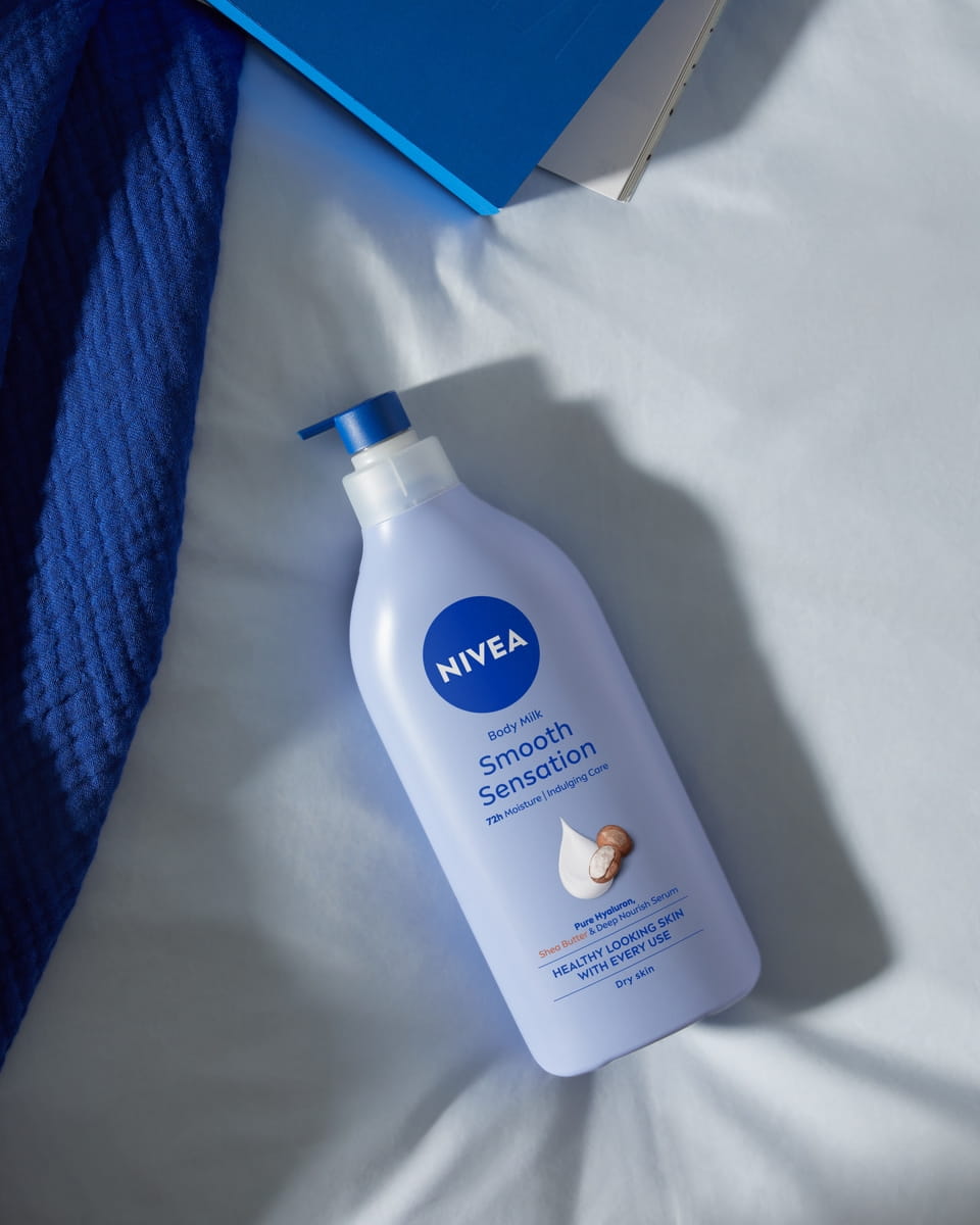 Мляко за тяло NIVEA Smooth Sensation е с подобрена формула и нов аромат. Здрава на вид кожа с всяко нанасяне. Подхранва в дълбочина до 72 ч. и оставя кожата копринено гладка на допир. С чиста хиалуронова киселина, масло от ший и дълбоко подхранващ серум. Нелепкава текстура, която се абсорбира бързо.