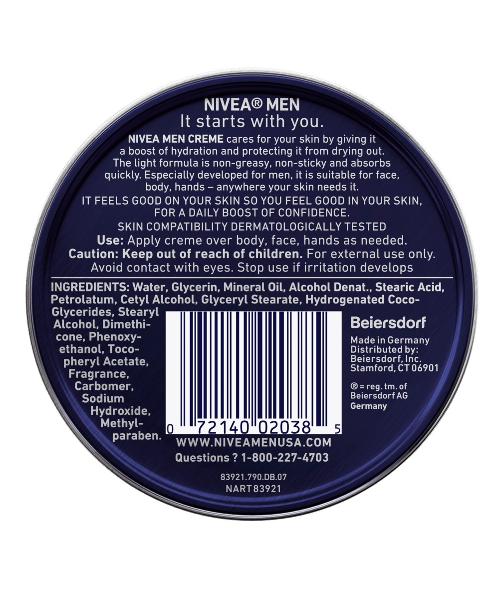 Крем за мъже NIVEA MEN се грижи за кожата ти, като ѝ осигурява допълнителна хидратация и предотвратява изсушаването. Леката формула не е мазна, не лепне и се абсорбира бързо. Специално разработен за мъже, подходящ за лице, тяло и ръце – навсякъде, където кожата ти има нужда от грижа.