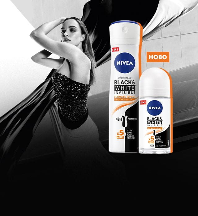 NIVEA Black & White Invisible блокира НЕПРИЯТНИТЕ МИРИЗМИ със завладяващи аромати, предотвратява ИЗПОТЯВАНЕТО и осигурява до 48ч. ЕФИКАСНОСТ. Предпазва от ПЕТНА, като защитава оригиналния цвят на любимите ти дрехи. Уникалната формула е подходяща за ежедневна употреба и във всякакви условия, тъй като не оставя СЛЕДИ върху кожата и дрехите ти. Освен това е грижовна и предотвратява появата на кожни РАЗДРАЗНЕНИЯ. Накратко това е идеалният дезодорант, който се грижи за теб и за твоите дрехи, по безупречен начин и във всяка ситуация, за да се чувстваш винаги уверена в твоя любим аутфит!